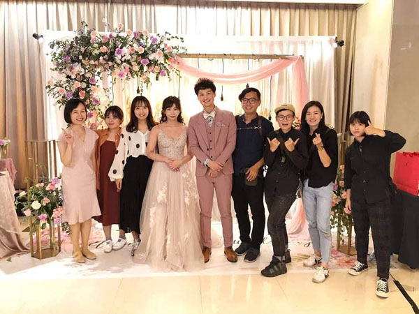 還配合我婚禮的dress code準備一件粉色洋裝進行婚禮主持
